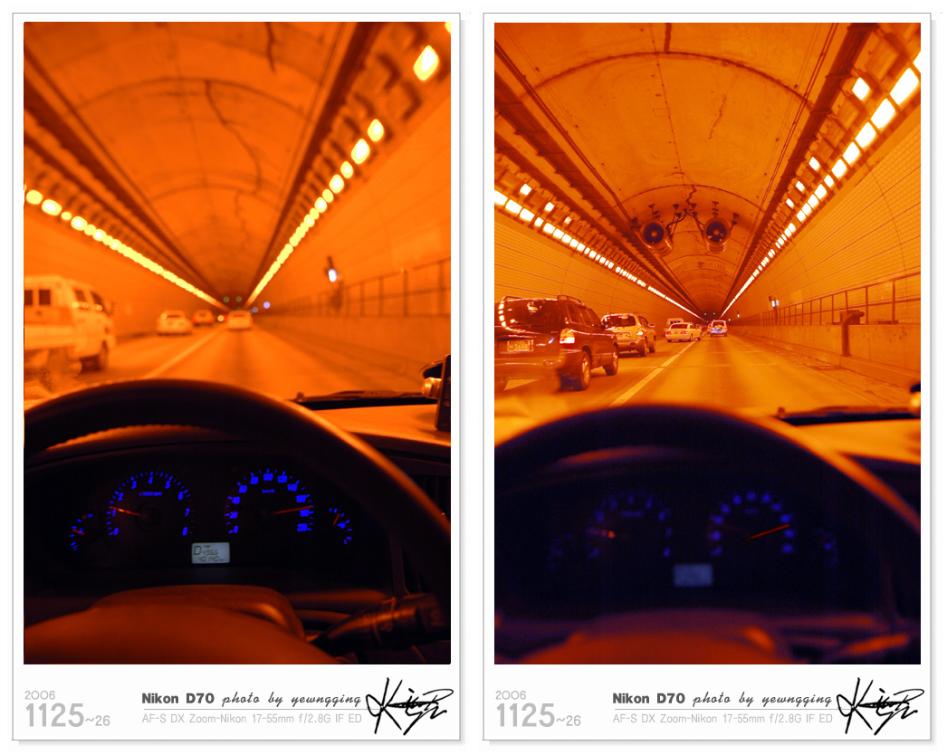 혹시~ 저기 대관령터널?? 저도 얼마전 정동진 다녀오면서 터널안에서 함 밟아 봤는데... 회사 차가 꼬물이라 160이상은 안나가더라구여 ㅋ~