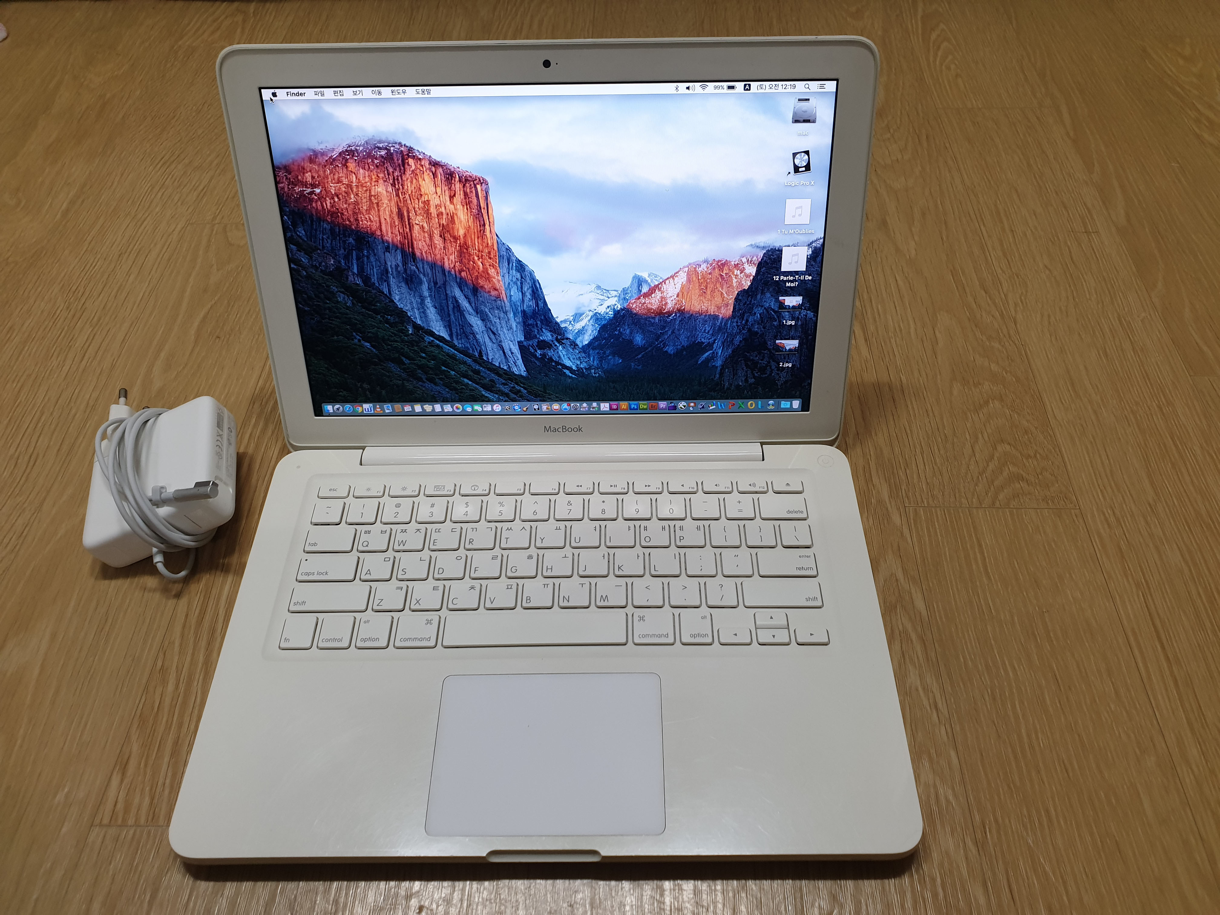 구성품은 배터리 새거 장착된 외관좋은 화이트맥북과 새로 산 충전기입니다