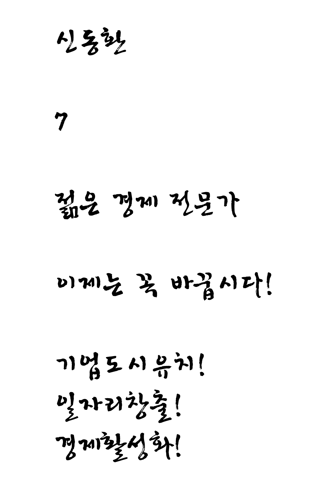 [급]아웃라인 부탁드립니다(_ _) kidcudi 일반 0 3878 2010.05.18 01:24 -0001.11.30 00:00 20100518-.ai (0byte) + 22 > > 신동환 > > 7 > > 젊은 경제 전문가 > > 이제는 꼭 바꿉시다! > > 기업도시유치! > 일자리창출! > 경제활성화! > > 너무많죠? > 위에 문구들을 유려체랑 쿨째즈체 두개로 아웃라인좀 부탁드립니당 > 조금 급해서요 ㅠ.ㅠ > 유려체밖에 없어서 유려체만 했어용
