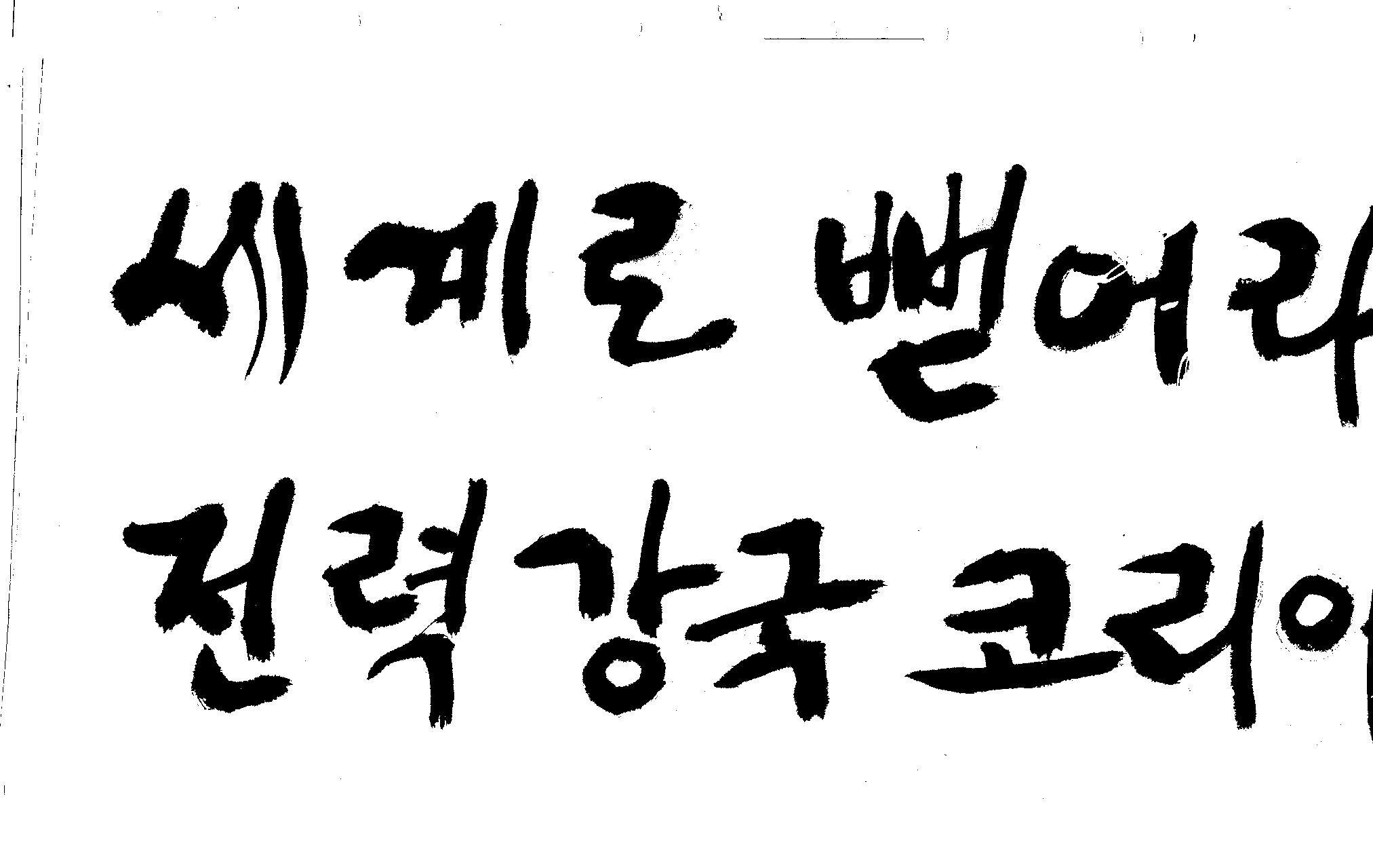 캘리 좀 부탁드려요!~ 김철호 일반 1 12636 2008.12.24 12:09 > > > > > > > > > 전력회사 신문광고를 하는데요 캘리로 멋지게 하고픈데 > > > 캘리프로그램으로 아무리 써도 느낌이 안나옵니다 ㅜ.ㅜ > > > 이런걸 부탁한다는 자체가 너무나도 염치없지만 부탁드립니다. > > > > > > 세계로 뻗어라! 전력강국 코리아 > > > > > 보기는 쉬워도 하기는 어려운게 > > 세상 모든 일 일겁니다. > > 그중에 캘리그라피가 그런 것일 겁니다... > > 스캔중에 글꼴이 잘린것은 서로다른글꼴서 편집하시길... > > 글수가 많아서 어쩔 수없네요... > > >