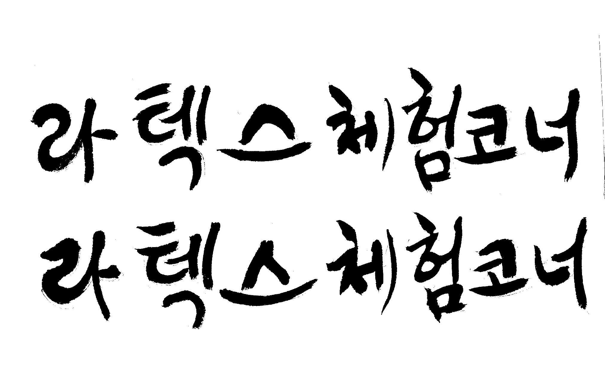 캘리좀 부탁드립니다~ 김철호 일반 0 5835 2008.12.19 01:07 > > 김철호님 지난번에 주신 캘리는 잘 썼습니다~ 그때,, 쪽지로 인사도 드렸었는데 기억하시나요? ^^; > 오월이라는 글자는 달력에 예쁘게 박혀나왔습니다~ > 다들 예쁘다고 글자 어떻게 만들었냐며.ㅋㅋ > 한가지 더 부탁을 드릴려구요~ > "라텍스 체험코너"라고 부탁드립니다~ > > 이런느낌으로 부탁드려도 될런지..이미지 첨부합니다~ > 나름 많이 했는데... 잘 않되네요.. 기쁜맘으로 올리지 못해 죄송...