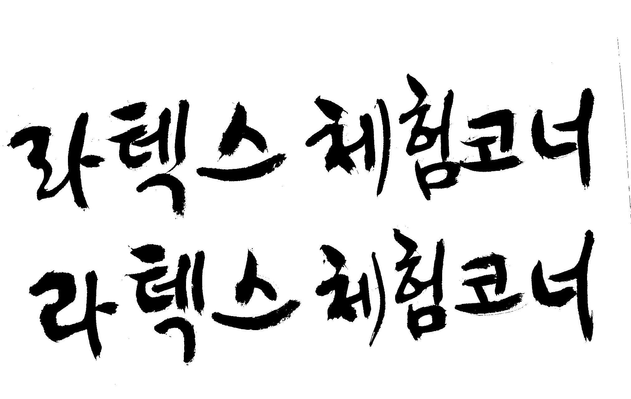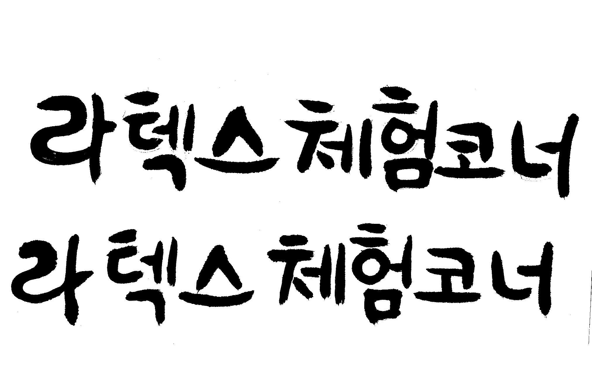 캘리좀 부탁드립니다~ 김철호 일반 0 5887 2008.12.19 01:08 > > > > > > > > > 김철호님 지난번에 주신 캘리는 잘 썼습니다~ 그때,, 쪽지로 인사도 드렸었는데 기억하시나요? ^^; > > > 오월이라는 글자는 달력에 예쁘게 박혀나왔습니다~ > > > 다들 예쁘다고 글자 어떻게 만들었냐며.ㅋㅋ > > > 한가지 더 부탁을 드릴려구요~ > > > "라텍스 체험코너"라고 부탁드립니다~ > > > > > > 이런느낌으로 부탁드려도 될런지..이미지 첨부합니다~ > > > > > 나름 많이 했는데... > > 잘 않되네요.. > > 기쁜맘으로 올리지 못해 죄송... > > >
