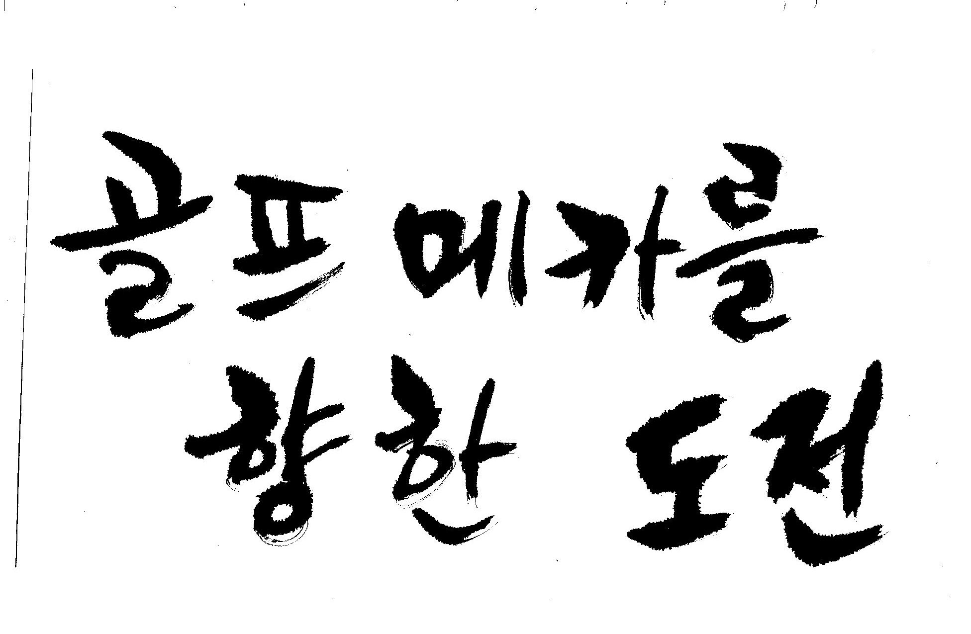우경의 행복한 캘리세상-골프메카 김철호 일반 0 7694 2009.07.18 10:28 > > > > > > > > > 리듬감을 최대한 살리고 ㅡ 스포츠의 운동감과 밝음 > > > 기교섞인 획을 배제--일반적인 느낌 > > > 굵기변화를 통하여 도전 낱말을 강조 > > > 스타일은 비슷하지만 ...한 사람이 썼으니까 ㅎㅎㅎ > > > 서로 다른 글꼴을 올린 것은... 비교하여 보시고... > > > 편집자에게 선택권을 주는 것입니다 > > > > > >