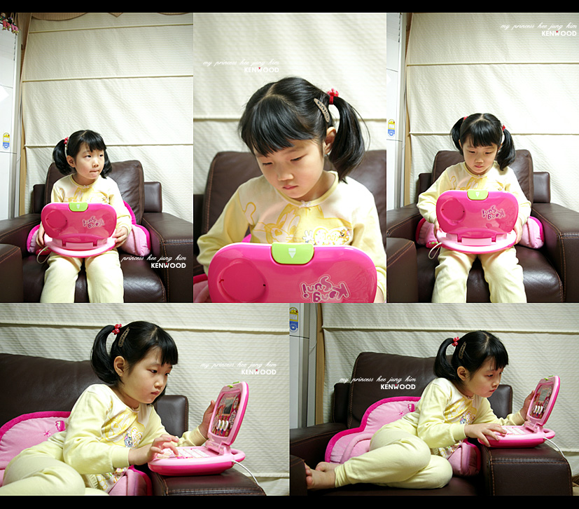 제목보고서 콩순이컴퓨터인가? 했구먼요 ^^ 희정이가 좋아하겠네요....ㅎㅎ 울집엔 장나라목소리가나오는 컴터 모 그런거 있는데..... (이름은 모름 ㅎ) 어린이들은 거들떠도 안봐용 ㅡㅡ^ 지네들도 가짜와 진짜 구분하나봐요~~~ 핸펀도 장난감은 싫어하궁.... 희정이는 내의만입고있어동 이쁘네요~