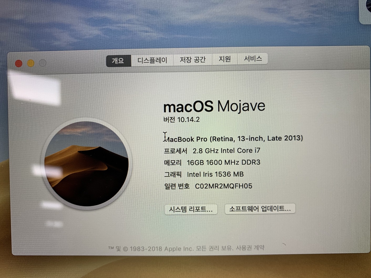 맥북프로 레티나 팝니다. [인텔코어 i7 2.8GHz / 메모리16GB / SSD 512GB / 13인치(Late2013)]